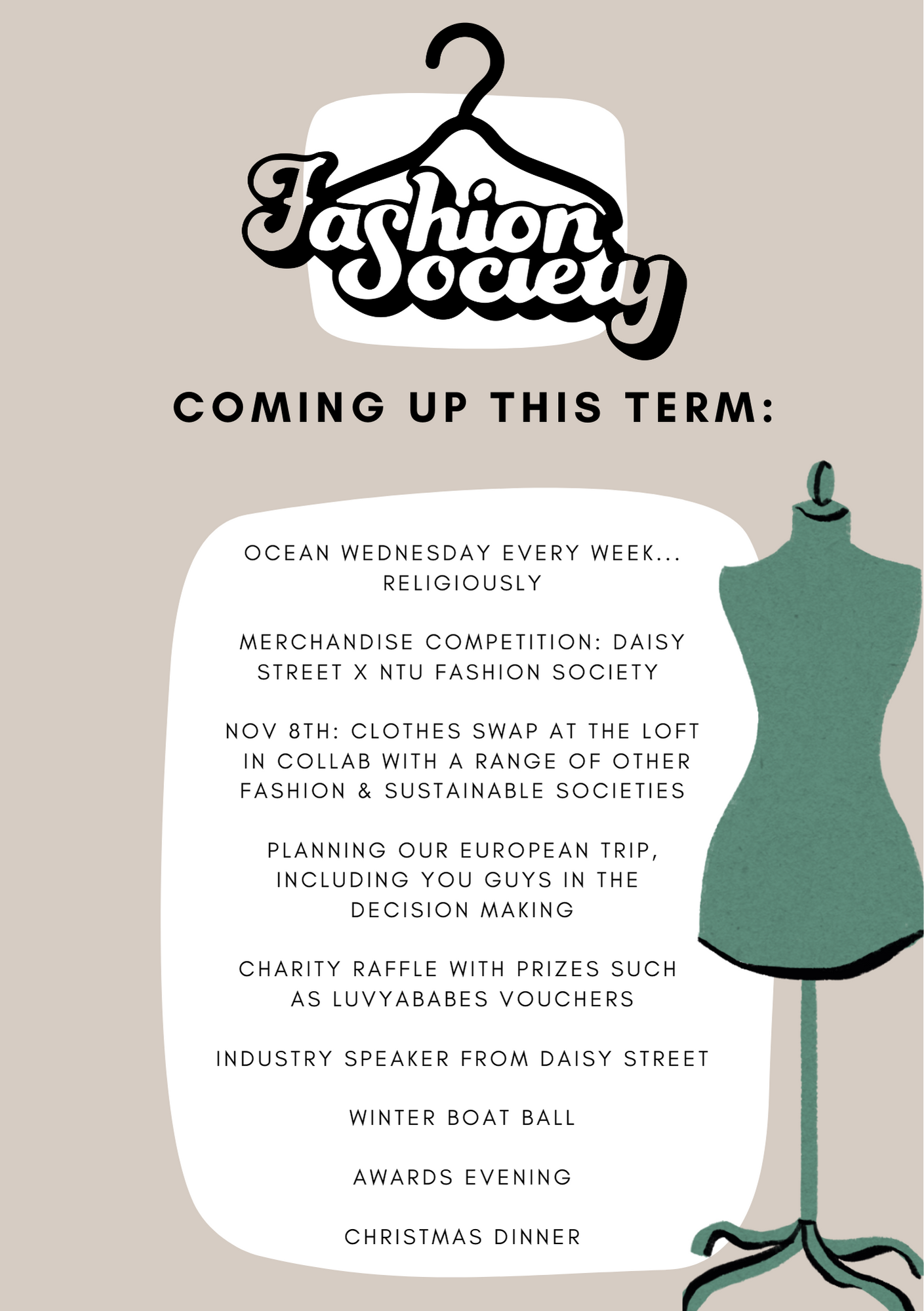 As the Events Officer and Content Creator for NTU Fashion Society 2022/23, my role involved organising and executing fun and inclusive society events, creating engaging and high-quality content for social media and promotional materials, and fostering community among members.I networked and built partnerships with industry professionals, implemented strategic marketing to boost event attendance, and maintained the society's brand image. Additionally, I provided skill development opportunities through workshops and training, conducted post-event evaluations to improve future activities, and stayed updated with fashion trends to continually bring fresh ideas to the society.